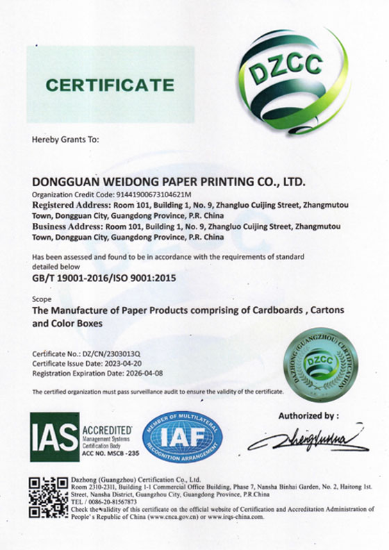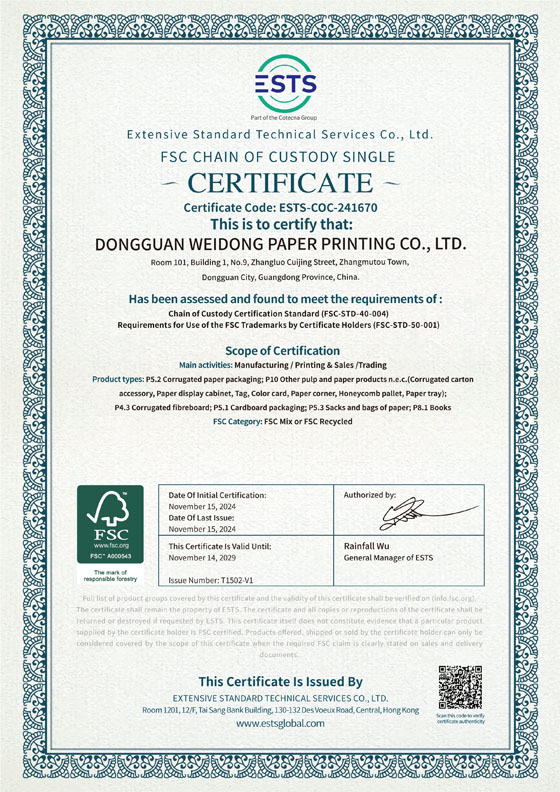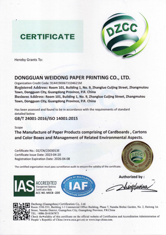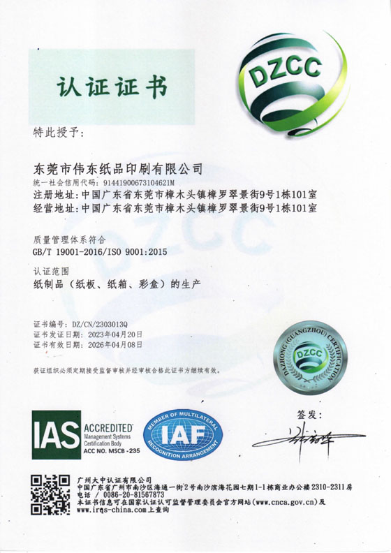 先后通过IS09001国际质量 体系、IS014000环境管理 体系、FSC森林环保认证、 危险品UN货物包装箱认证等 10多项认证